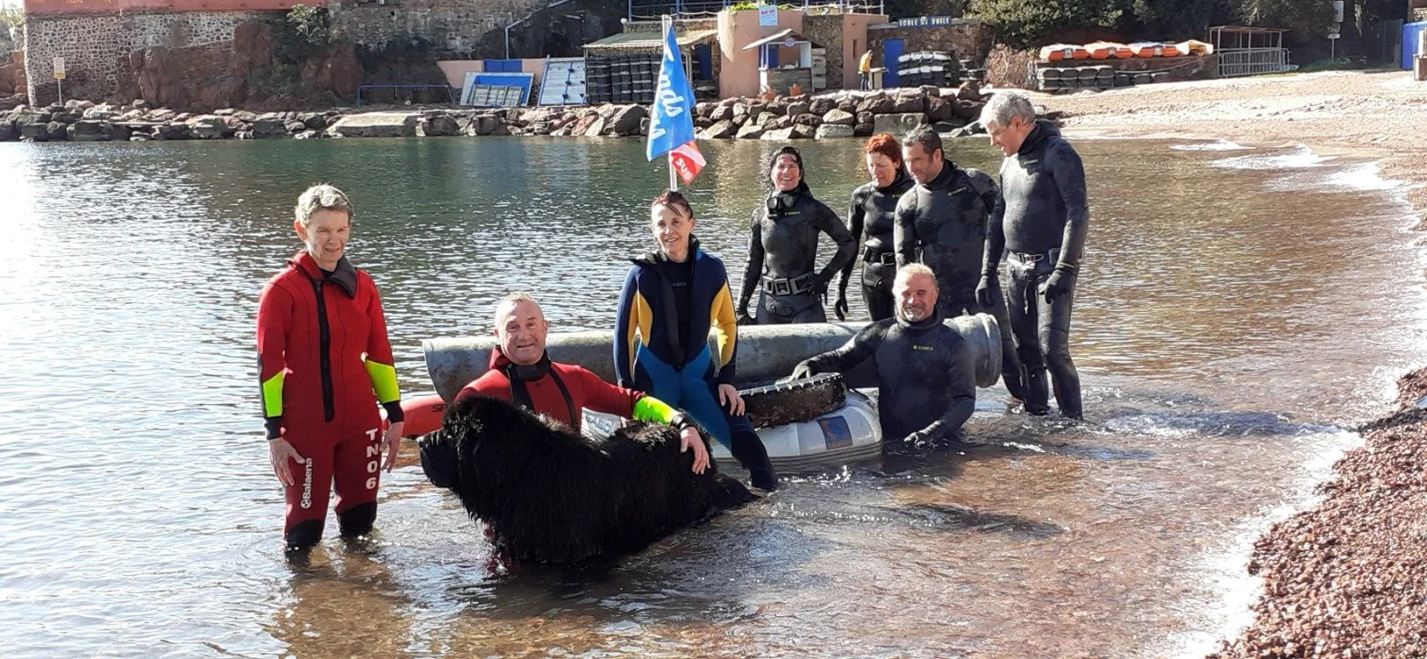 We had an exclusive interview with French organizations making a difference with dogs and the environment. Our FRR team spoke to water rescue Terre Neuve 06 president, Jean-Christophe Meyer. The team joined conservation diving group Fonds Bleus on its innovative mission to clean up the seafloor. And one of the most im-paw-tent and unique assets is a pack of lifeguard dogs. The aquatic professionals utilize trained canines, namely Newfoundland dogs to help pull divers, boats, and litter to the shores around Antibes, France. Garbage found in the ocean includes plastics, metal debris, mostly iron, and a number of different items. Meyer says Newfoundlanders are impressive swimming athletes who cuddle. These amazing teddy bear-like canines can pull boatloads of waste and groups of people at the same time. They are strong, all-weather natural lifeguards with webbed paws. Since last year, Meyer's team and Fonds Bleus have worked with the dogs during several exercises to clean the water.